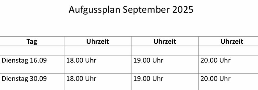 Wegen Reininigungs- und Renovierungs-Arbeiten ist das Schwimmbad vom 11.10.25 bis 26.10.25 geschlossen.